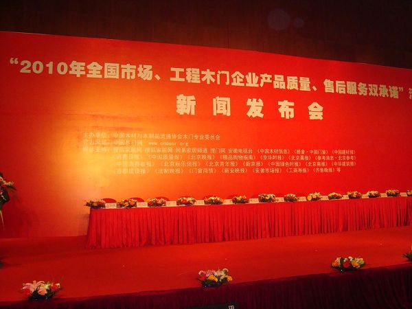2010年3月2日,中國(guó)木材與木制品流通協(xié)會(huì)木門專業(yè)委員會(huì)在國(guó)家會(huì)議中心舉辦“2010年全國(guó)市場(chǎng)、工程木門企業(yè)產(chǎn)品質(zhì)量、售后服務(wù)雙承諾活動(dòng)新聞發(fā)布會(huì)”。群喜門業(yè)總經(jīng)理單澤喜和來(lái)自全國(guó)各地的400多位木門企業(yè)家、采購(gòu)商、新聞媒體參加了此次盛會(huì)。