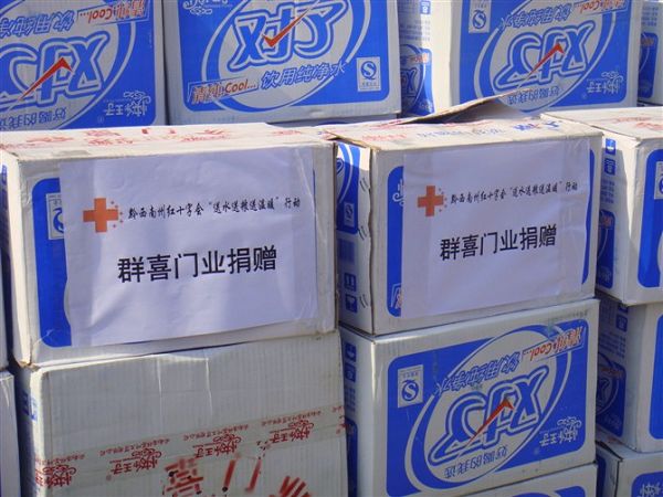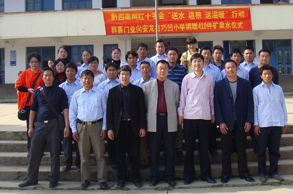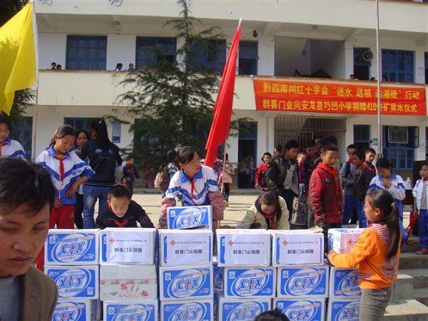 持續干旱給我國西南地區帶來了極大的災難,人們的生活水平出現了極大的困難。群喜公司作為一個有強烈責任感的企業公民,面對西南地區的持續干旱,群喜公司聯合貴州省黔西南州紅十字會開展了“送水、送糧、送溫暖”活動。4.19日,在興義代理何仕紅先生的組織下,向安龍縣巧凹小學捐贈了12000瓶礦泉水(共500件),共去了七輛車(全部經銷商自己的車),20多個人,在當地造了很大聲勢,更進一步樹立了群喜品牌形象。現在何老板組織各縣、鎮的經銷商統一搞活動:即幾個地方的車輛打上條幅,今天全部集中在一個地方宣傳,明天全部到另一個地方宣傳,效果很好,已經把“群喜”做成黔西南州室內門第一品牌!
