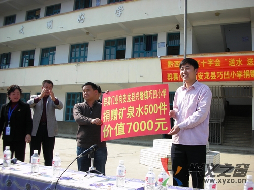 在捐贈現場筆者了解到,浙江永康群喜門業有限公司的這次捐贈,是由家住安龍縣龍廣鎮農民工何仕紅和我州紅十字會“牽”的“線”。今年4月中旬,現在身份為浙江永康群喜門業有限公司黔西南州總代理的何仕紅,從新聞媒體了解到我州遭到百年不遇旱情,旱區群眾飲水十分困難后,及時向公司經理匯報并建議公司開展捐贈活動,以盡企業的一份社會責任。公司經理單澤喜立即委托何仕紅向我州紅十字會明確表示捐贈的意向,州紅十字會通過安龍縣紅十會的聯系,決定把布依族聚居山區且學生飲水十分困難的巧凹小學確定為該公司的捐贈對象。4月19日這天,浙江永康群喜門業有限公司出資7000元購置了礦泉水并請車輛運送到了巧凹小學,緩解了該校340名學生的飲水困難。
