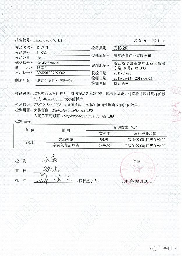 2、群喜抗菌木門表面的抗菌材料可以讓附著在門扇上面的細菌在短時間內死亡,避免在人員進出的時候產生交叉感染。