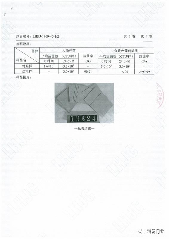1、創新采用抗菌涂料,權限木門在表面涂料中加入環保抗菌材料,對金色葡萄球菌抗菌率達到99.99%對大腸桿菌抗菌率高達90.91%。