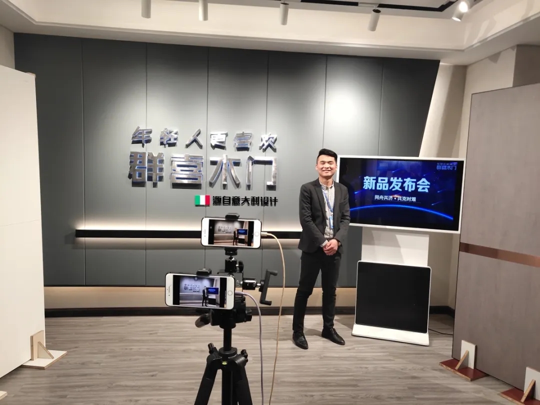 疫情改變了企業和消費者溝通的場景,但群喜木門也孕育了新的轉機。疫情特別時期,群喜木門首次以線上直播新品發布會的形式開展,不僅滿足了當前國情對人們“足不出戶”的要求,更讓大家體驗了一場沉寂已久的“歡聚”。