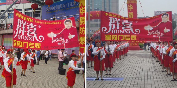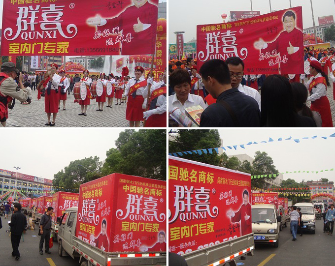 五金城廣場上人山人海。氣球,彩帶布滿了整個蔚藍的天空,喜慶的禮炮聲溢滿全場。我們整裝待發(fā),列出了我們最精彩的鑼鼓隊伍!我們的音樂,我們的陣勢在五金城門口壓倒了眾多群雄。我們每個人都喜氣洋洋的面對來觀看的人們。我們高舉著鮮紅的旗子,群喜室內門專家在眾多的同行面前顯得格外的醒目。整齊的隊伍,鮮紅的衣服,大家的傾力合作,笑容滿面的迎接五湖四海的人們。這一陣勢就吸引了很多客戶前來觀看,他們有的馬上拿起身邊的相機拍照,以免錯過了這么精彩的隊伍,有的主動索要我們的資料,有的贊不絕口的說:“群喜好,大品牌,我要去廠家看看”。我們也很熱情迎接了他們的到來,他們看了我們的樣品間,參觀了我們的流水線。群喜公司員工的認真的工作,車間的整潔,完美的質量。促使他們簽定了很多訂單。我們也忙得不亦樂乎。