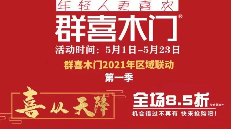 群喜木門喜從天降,特價商品,有顏值更有實力,是匠心精工好品質,更是為你量身定制的心動價。精致生活就現在,掀起這個五一最炙熱的浪潮!