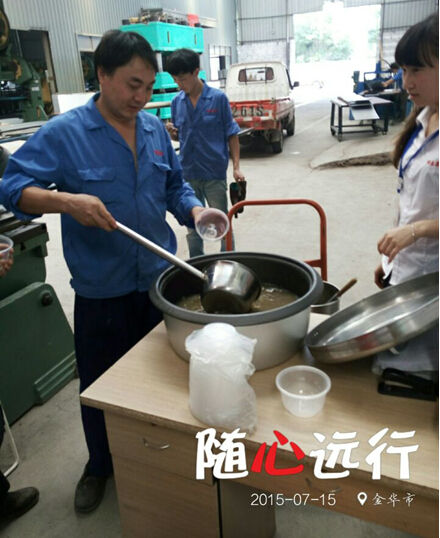 群喜門業此次供應的涼茶是經過行政部精心搭配的,配方有綠豆湯、甘草+薄荷葉、金銀花、菊花茶,可防暑降溫。在現場各位群喜人一個一個井然有序地拿著杯子排隊接涼茶喝,各個員工樂開懷,小編知道群喜門業要的就是這樣的結果,群喜不僅要員工開懷,同時也希望得到客戶滿意的笑容。保證品質、服務到位,這是群喜在行業里一致的佳話。