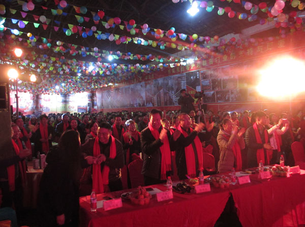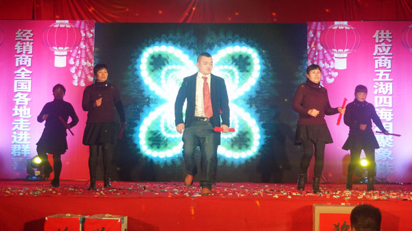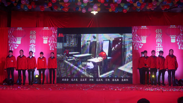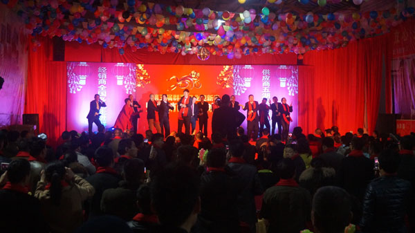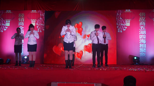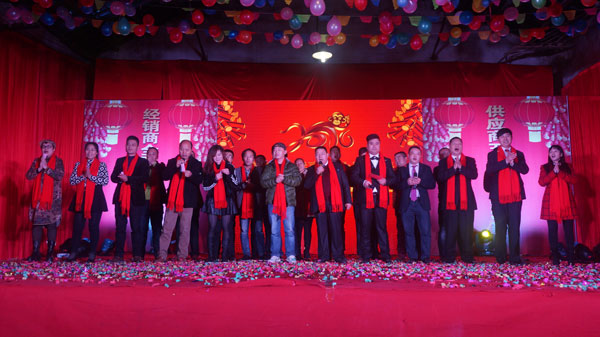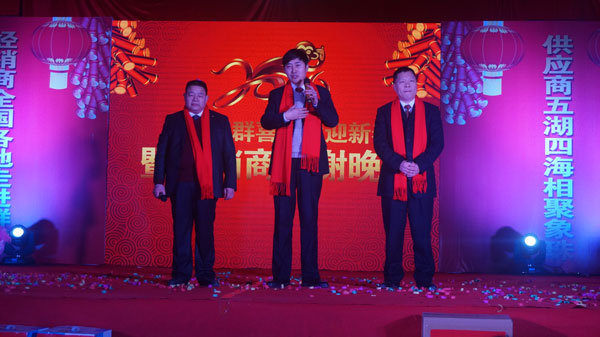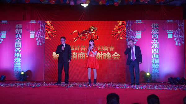 晚會在公司三位董事熱情洋溢的的新年祝福中拉開了序幕,他們向現場的全體員工、經銷商家人們和社會各界的朋友們致以最真摯的節日問候和美好祝愿,體現了公司對所有員工和家人朋友的深切關懷,彰顯了公司一直倡導的“有家,有愛,有群喜”的口號。