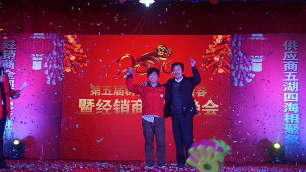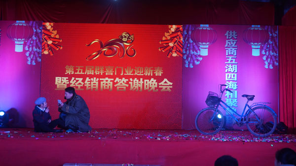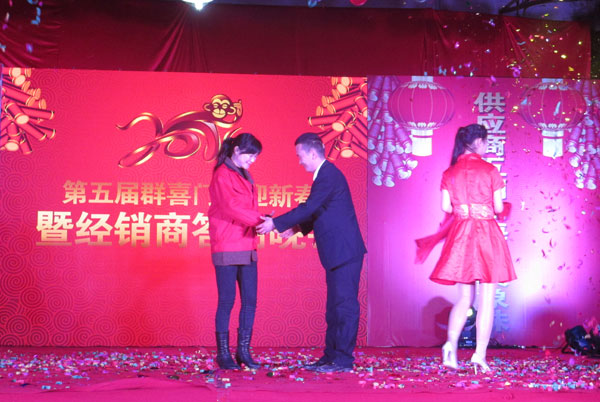 2016年1月6日,群喜門業第五屆迎新晚會暨群喜門業真情100服務體系正式發布推廣會在象珠廠區隆重召開。公司三位董事攜全體員工以及來自全國各地的近百名經銷商和社會各屆的好友歡聚一堂,共同總結2015,展望2016,氣氛歡樂而熱烈!