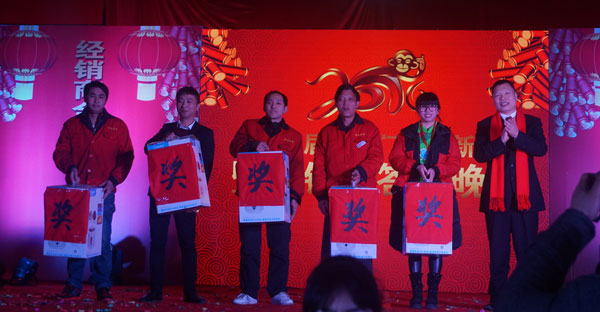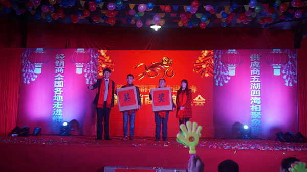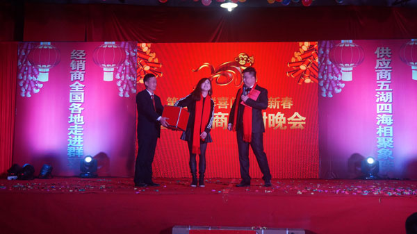 晚會現場,激動人心的抽獎環節貫穿整個盛典之中,特等獎:55寸液晶電視;一等獎:電冰箱;二等獎:電壓力鍋。三等獎:電磁爐,多種獎項令人萬分期待,現場的家人們無不對大獎翹首以盼。在大家的期盼中,大獎得主也一一揭開神秘的面紗。每一位員工都笑靨如花,臉龐上寫滿了對新一年的期望。