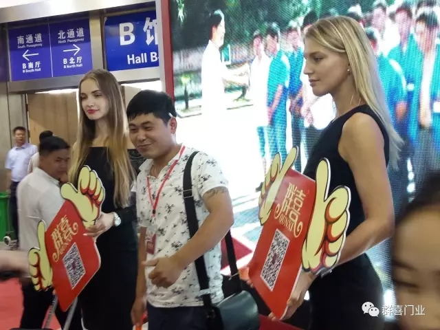 (來自俄羅斯的美女助陣群喜展位,引發參觀熱潮)
